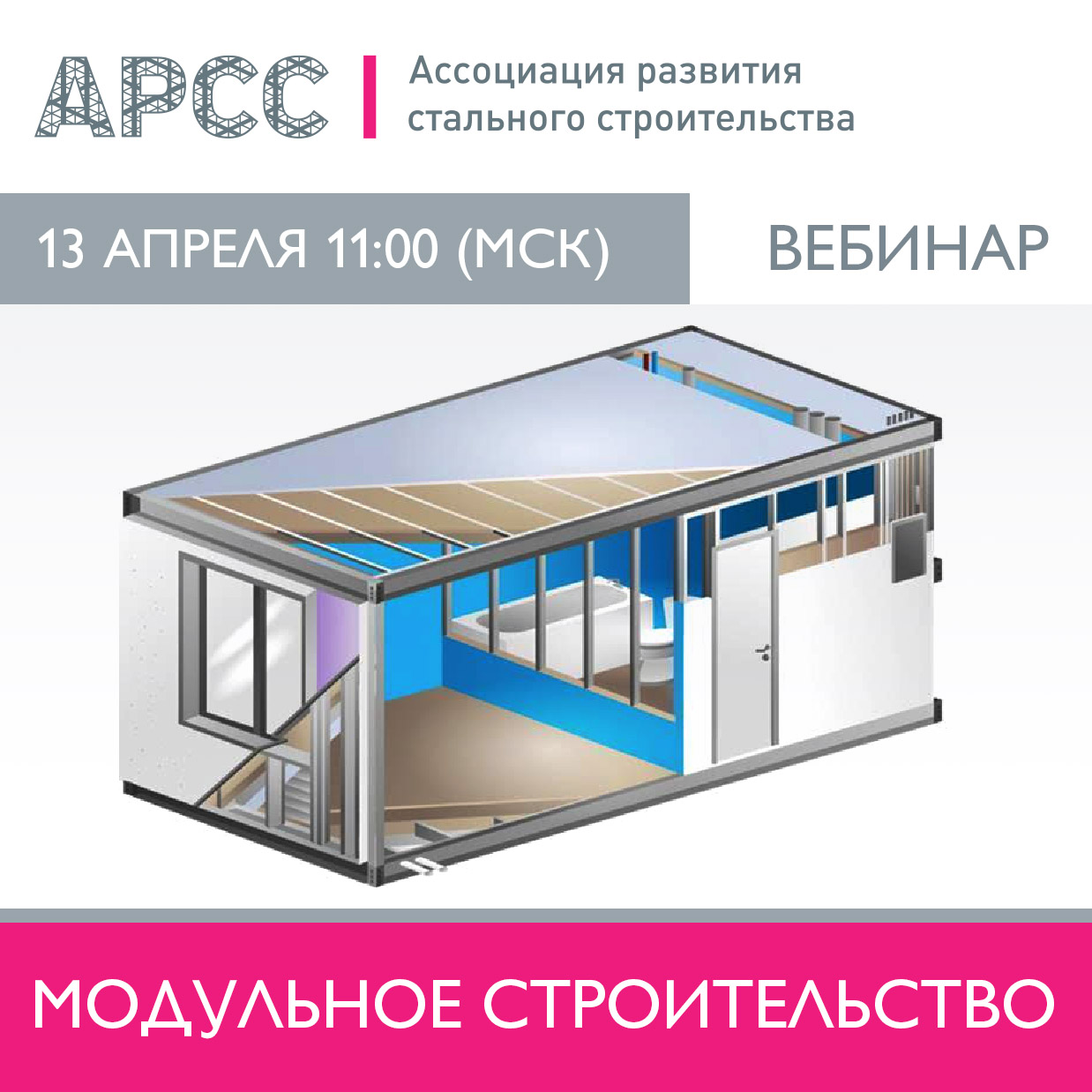 13 апреля в 11:00 МСК Ассоциация развития стального строительства проведет бесплатный вебинар на тему «Модульное строительство».