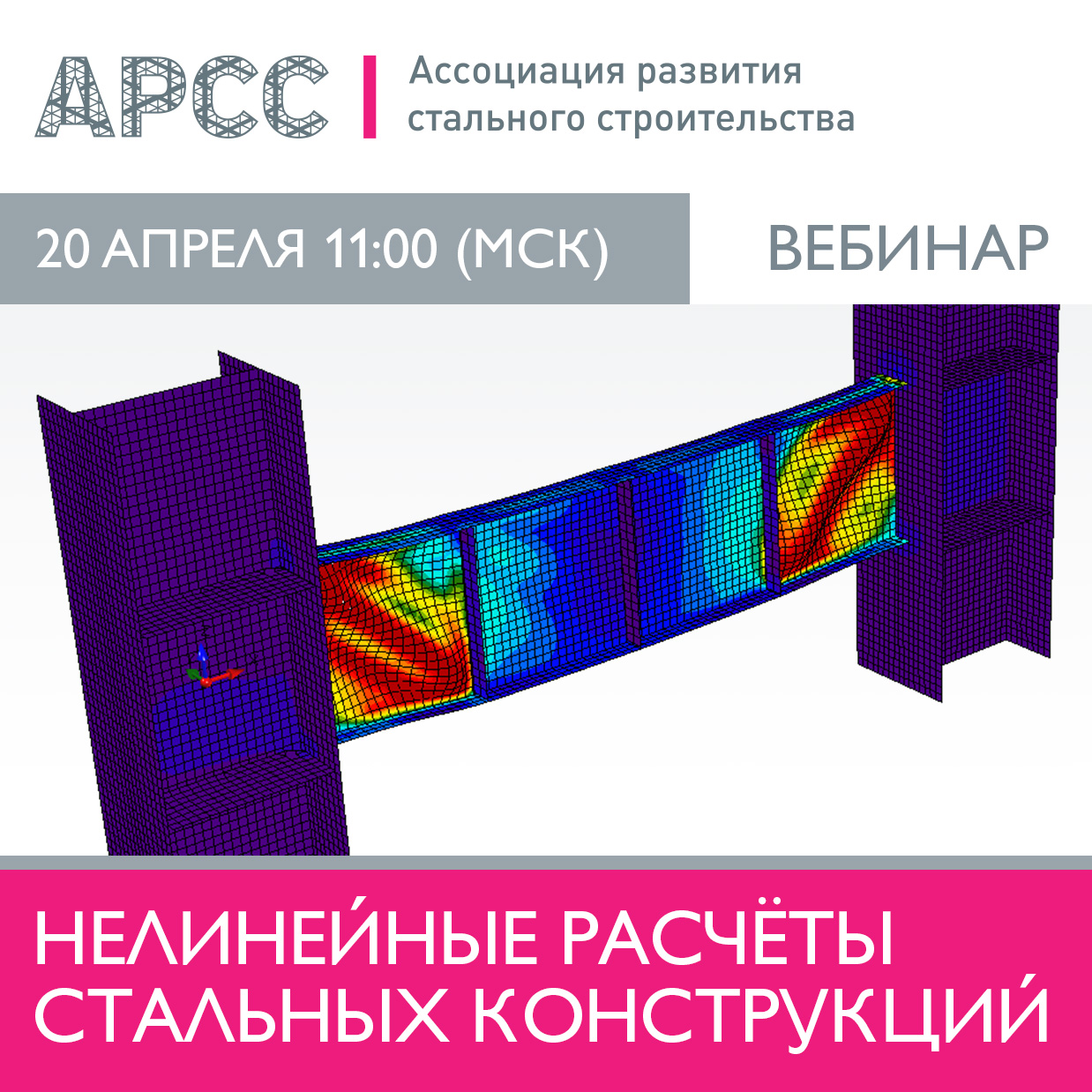 20 апреля в 11:00 МСК Ассоциация развития стального строительства проведет бесплатный вебинар на тему «Нелинейные расчёты стальных конструкций».