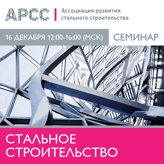 Напоминаем, что 16 декабря с 12:00 по 16:00 (МСК), Ассоциация развития стального строительства проведет одно из ключевых отраслевых событий – семинар «Стальное строительство».