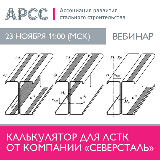 23 ноября в 11:00 МСК Ассоциация развития стального строительства проведет бесплатный вебинар на тему «Калькулятор для ЛСТК от компании «Северсталь».