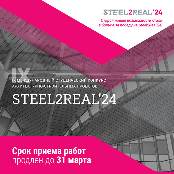 По просьбам участников продлевается срок приема работ на IX Международный студенческий конкурс архитектурно-строительных проектов Steel2Real'24 до 31 марта (воскресенье) включительно.
