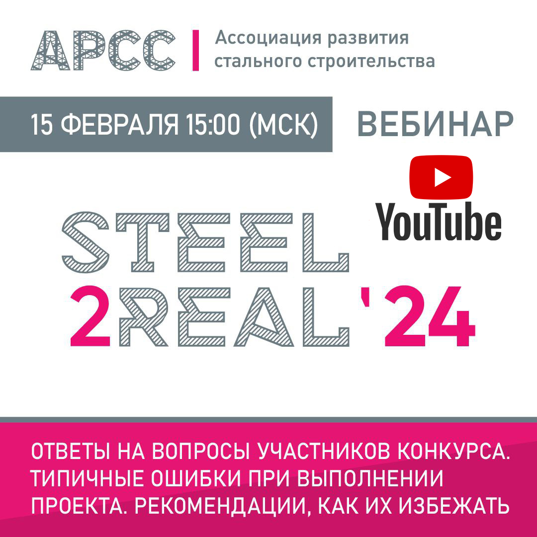 15 февраля 2024 года АРСС провела вебинар для участников конкурса Steel2Real'24 «Ответы на вопросы участников конкурса. Типичные ошибки при выполнении проекта. Рекомендации, как их избежать».
